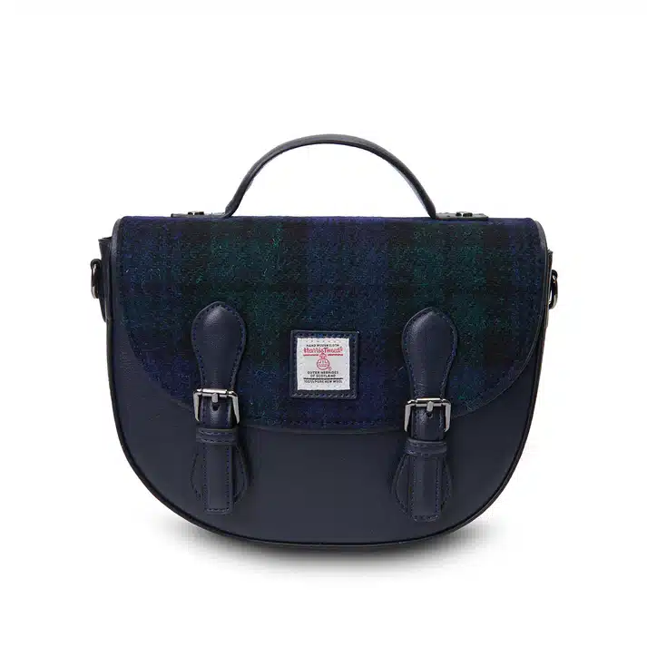 Inspired by the winding cobbled streets of Edinburgh, the Cobble Satchel Bag brings Scottish heritage into modern everyday style. The deep blue PU body is paired with an authentic Harris Tweed® blue tartan front panel, creating a striking yet timeless look.