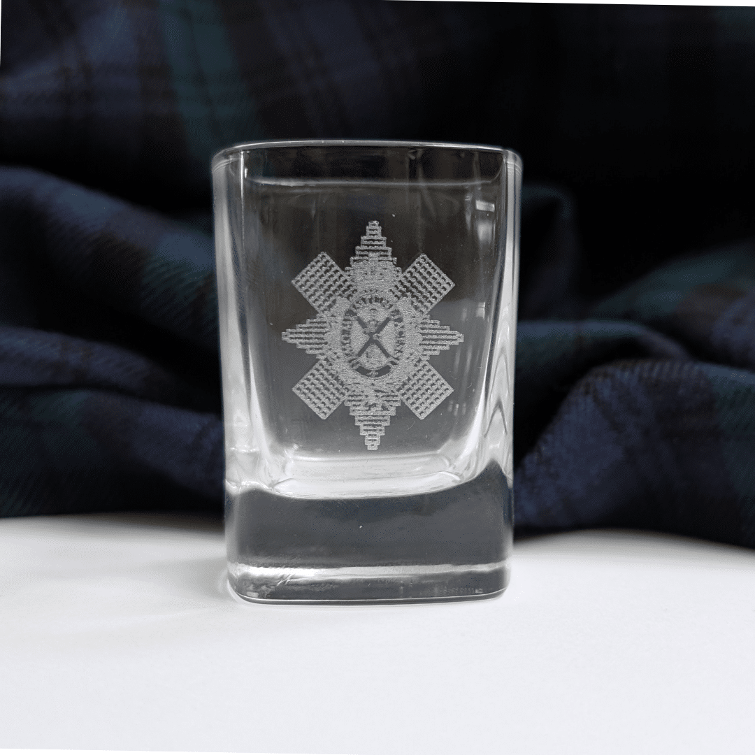 This Square glass features the crest of the Black Watch, one of Scotland’s most famous Highland regiments. The Black Watch has a proud military history dating back to the early 18th century.